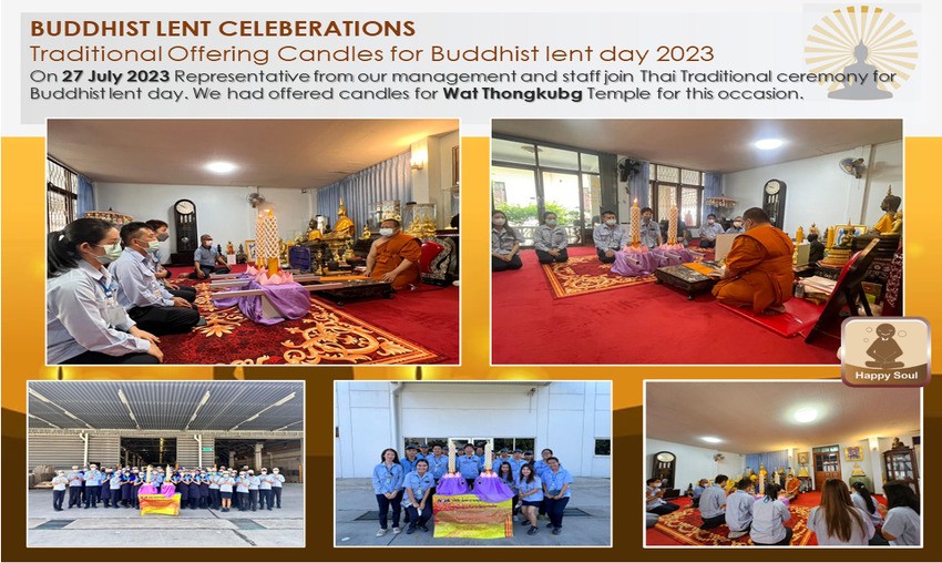 BUDDHIST LENT CELEBERATIONS : On 27 July 2023 Representative management and staff join ceremony for Buddhist lent day. We had offered candles for Wat Thongkubg Temple for this occasion.
