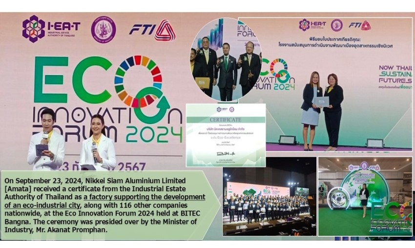 On September 23, 2024, Nikkei Siam received a certificate from the Industrial Estate Authority of Thailand as a factory supporting the development of an eco-industrial city,