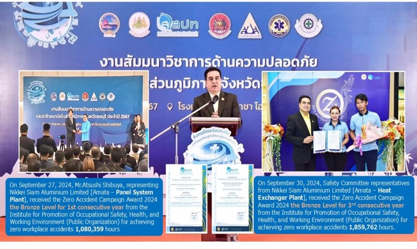 On September 30, 2024, Safety Committee representatives from Nikkei Siam [Heat Exchanger Plant], received the Zero Accident Campaign Award 2024 the Bronze Level for 3rd consecutive year