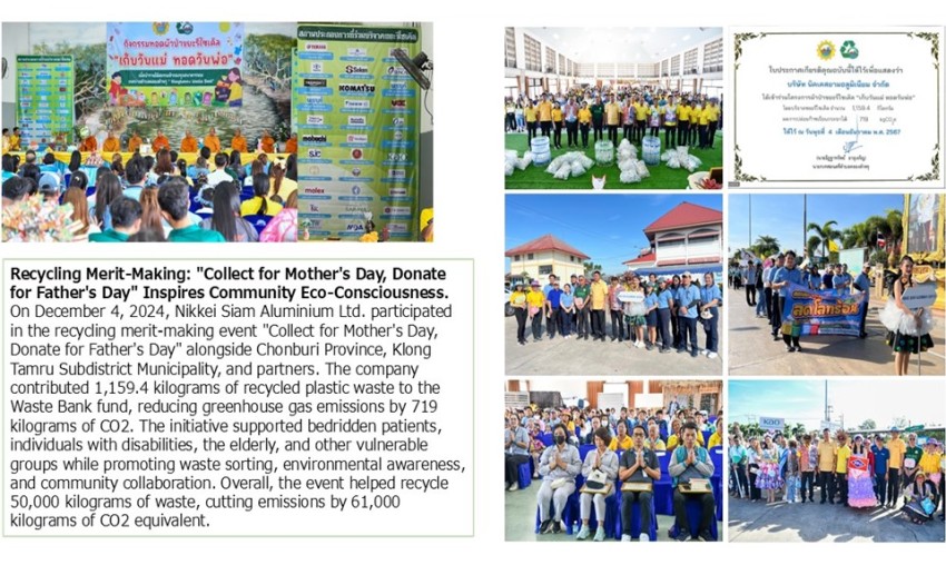 On December 4, 2024, Nikkei Siam Aluminium Ltd. Recycling Merit-Making: "Collect for Mother's Day, Donate for Father's Day" Inspires Community Eco-Consciousness.