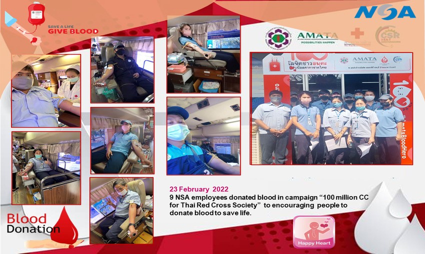Blood Donation : 23 February 2023 9 NSA employees donated blood in campaign “100 million CC for Thai Red Cross Society” to encouraging people to donate blood to save life.