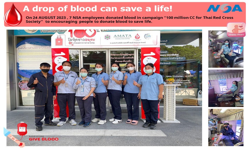 A drop of blood can save a life! : On 24 AUGUST 2023 , 7 NSA employees donated blood in campaign “100 million CC for Thai Red Cross Society”