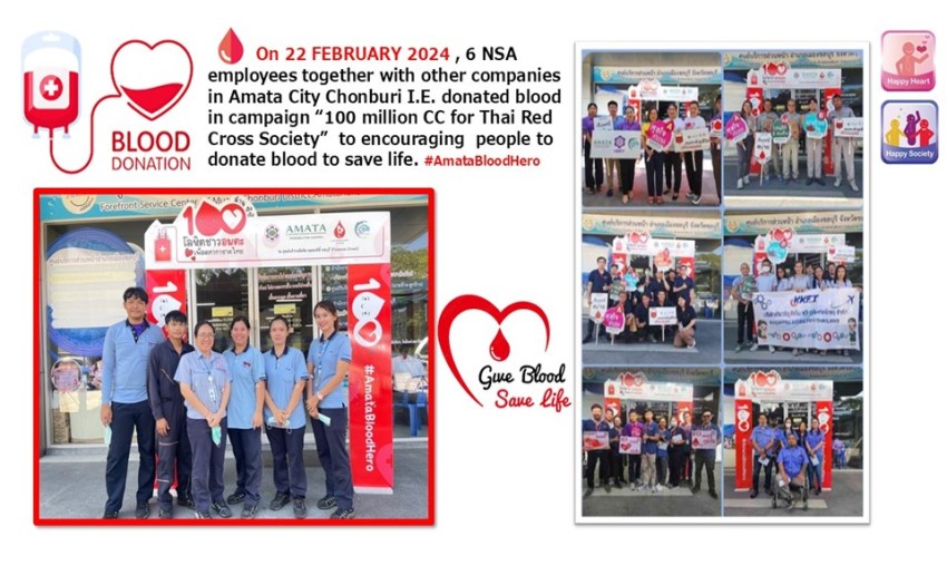 NSA employees together with other companies in Amata City Chonburi I.E. donated blood in campaign “100 million CC for Thai Red Cross Society”